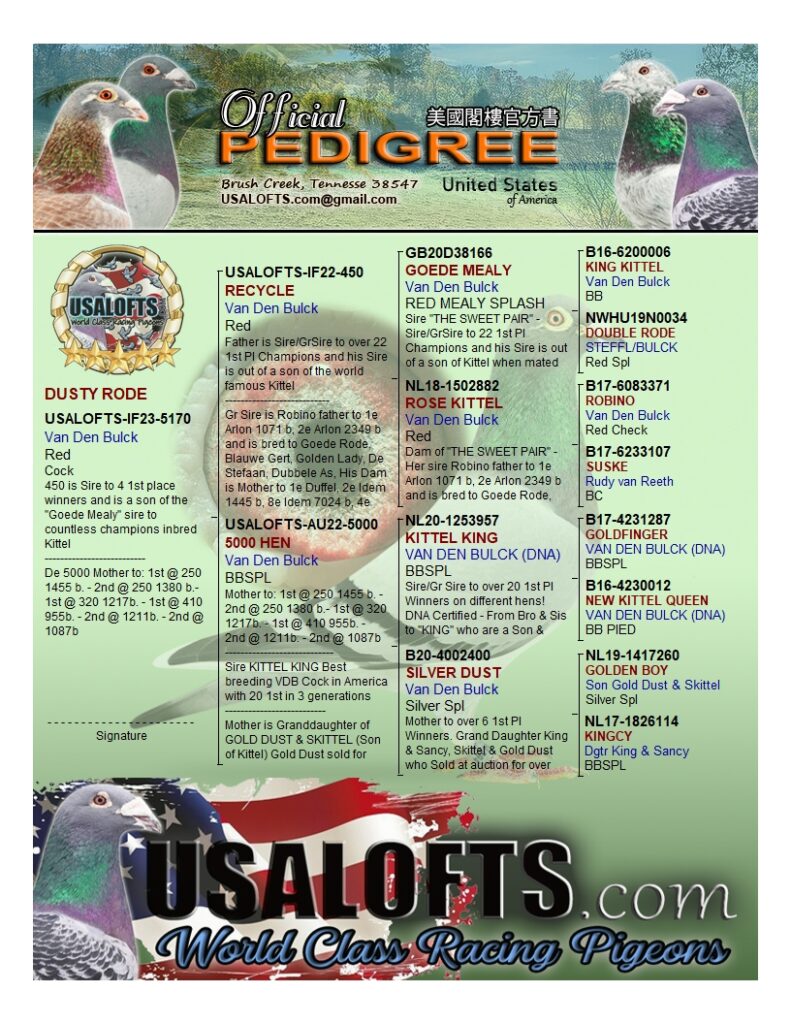 © 2025 /2025 All Rights Reserved, USALOFTS.com LLC. --- Member of the "International Federation" (IF) & the American Racing Pigeon Union (AU)