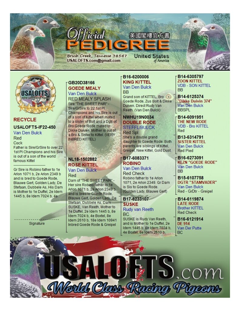 © 2025 /2025 All Rights Reserved, USALOFTS.com LLC. --- Member of the "International Federation" (IF) & the American Racing Pigeon Union (AU)